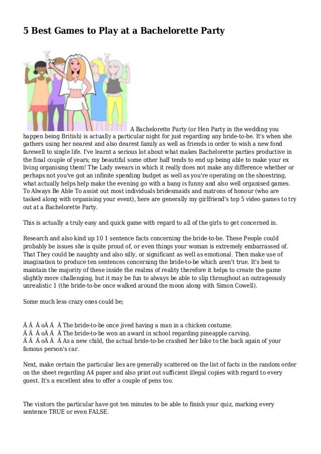 The Maid of Honor will have to call every guest in advance and ask them to bring some kind of item from a sex shop. When your story is ready, remove some key adjectives, verbs, and nouns to leave some blanks. Step 2.If the card is blank it means that the dare can be anything the bride decides it to be, made up right there on the spot in the spur of the moment.